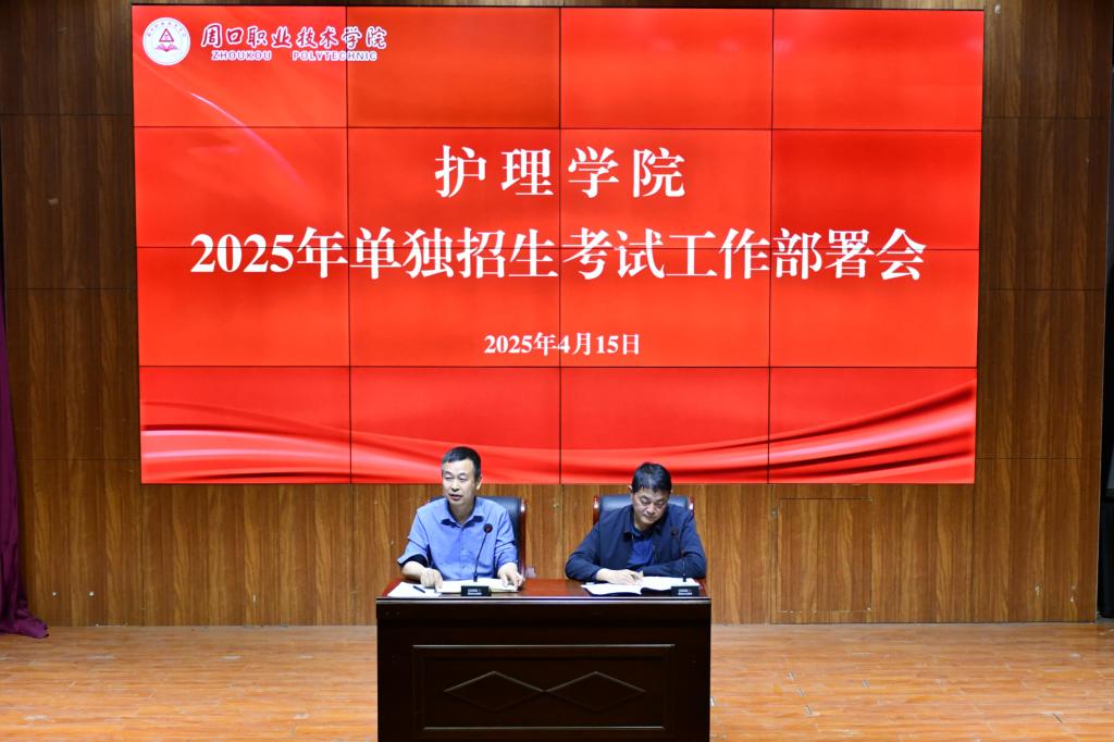 4月15日下午,护理学院在文昌校区报告厅召开2025年单独招生考试工作部署会。护理学院全体教师参加会议,护理学院院长付晓东主持会议。