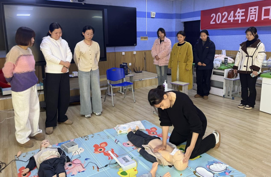 在深化校企合作的背景下,12月21日下午,周口市中心医院的助产士葛盼应护理学院之邀,为备战2024年河南省高等职业教育技能大赛婴幼儿健康养育照护赛道的学生提供了婴幼儿心肺复苏项目的指导。凭借其深厚的理论知识和丰富的临床经验,葛盼助产士细致地讲解了操作的关键点,并进行了示范。在学生进行实际操作时,她准确地指出错误,并耐心地回答了他们的疑问。