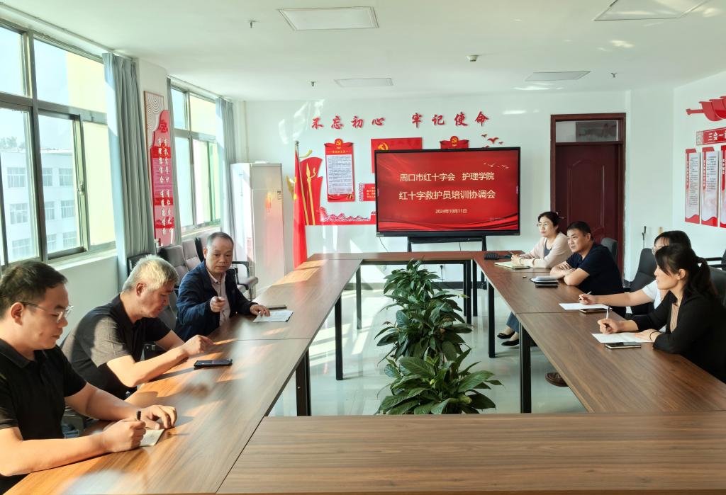 为切实加强校园安全教育工作,进一步提升师生的自救互救能力,10月11日上午,周口市红十字会一行莅临我院召开红十字救护员培训协调会,就培训工作的具体实施方案进行了深入细致的讨论和周密部署,确保培训工作有序推进,取得实效。