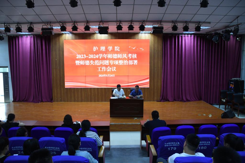 为全面提升师德师风建设水平,贯彻落实上级部门和学校关于师德师风考核和师德失范问题专项整治工作的部署要求,6月24日,护理学院召开2023-2024年师德师风考核暨师德失范问题专项整治部署工作会议。护理学院党总支书记孙先锋出席会议并讲话,护理学院全体教师、行管人员参加会议。会议由院长付晓东主持。