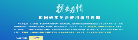 因学校推迟开学,为保障全校师生在校外可以无障碍地访问知网主要数据库,查找和阅读文献,尤其是毕业生在假期顺利地撰写毕业论文,学校已经联合中国知网开通了知网研学平台(网址:x.cnki.net)校外使用服务。