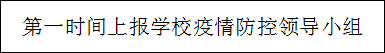 2.迅速行动,强化防控。各院部要成立领导组,制定切实可行的防控工作方案,落实专项工作职责。建立联络员制度,安排专人负责相关信息的填报及上传。明确信息报告人,并报学生处备案。