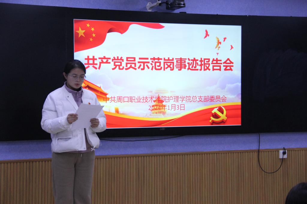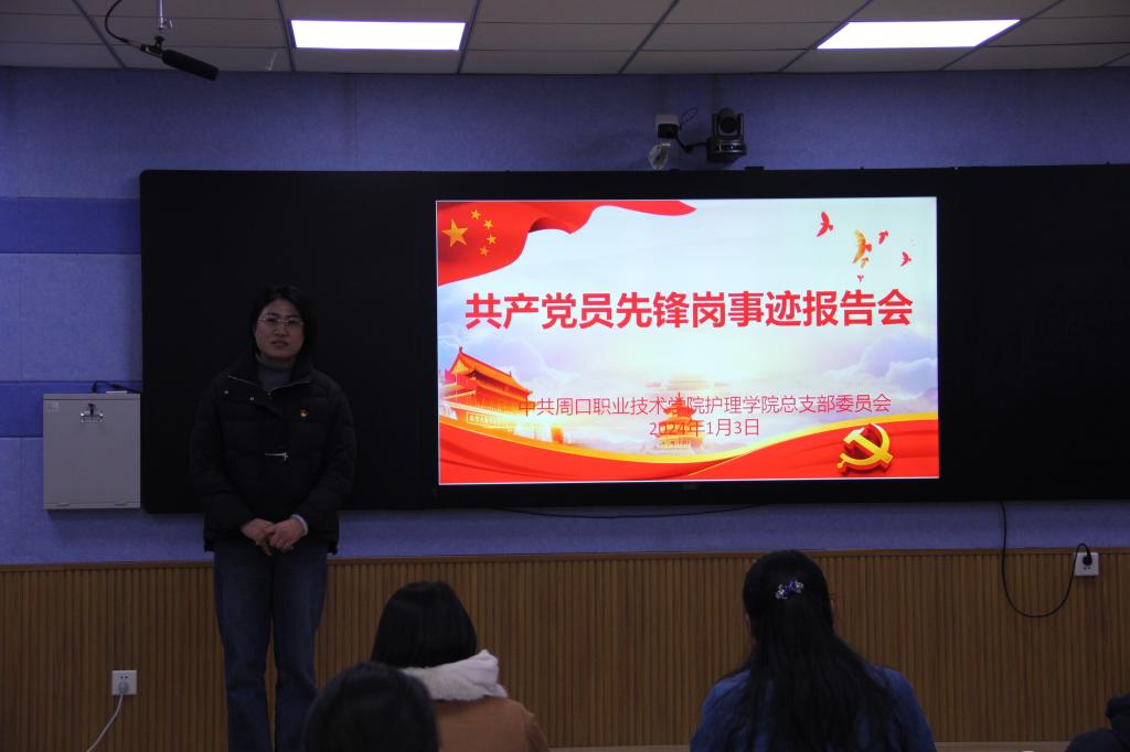 学习身边典型,汲取榜样力量。1月3日,护理学院在实训楼405会议室举办先锋岗事迹报告会。本次活动为深入学习贯彻习近平总书记在党史学习教育大会上的重要讲话精神,鼓励学院全体同学向优秀党员学习,坚定理想信念,汲取智慧营养,勇担青春使命。学院全体党员、发展对象及入党积极分子参与会议。会议由教师党支部书记赵新主持。