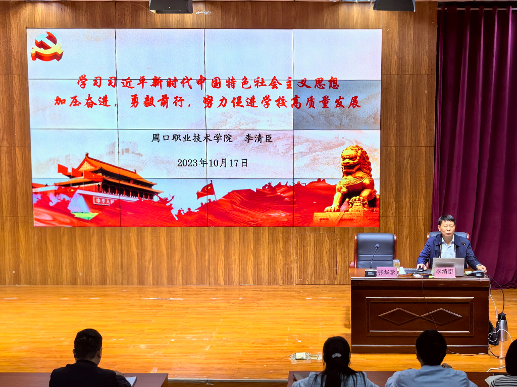 李清臣围绕“充分认识学习习近平新时代中国特色社会主义思想的重大意义”“准确把握习近平新时代中国特色社会主义思想的精髓要义,更好指导学校高质量发展”“坚定用习近平新时代中国特色社会主义思想武装自己,改造主观世界,永葆共产党人的政治本色”三个方面,结合自身工作实际和切身感受进行全面解读,重点阐释了习近平新时代中国特色社会主义思想重大深远的历史意义,全面准确把握习近平新时代中国特色社会主义思想内容。