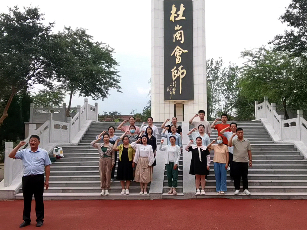 在参观过程中,全体党员教师通过大量生动典型的历史资料、先烈遗物、影像图片和工作人员的细致讲解,系统深入地了解了以彭雪枫、张震将军为代表的革命先烈在西华县等豫东地区抗战事迹和艰苦卓绝感人至深的革命故事,进一步重温了党的历史。在共同追忆革命先烈不畏牺牲、奋战到底的光辉业绩中,接受了一场红色革命精神的洗礼。参观结束后,在杜岗会师纪念碑前,付晓东同志带领全体党员教师,面对鲜红的党旗高举右手,重温入党誓词。