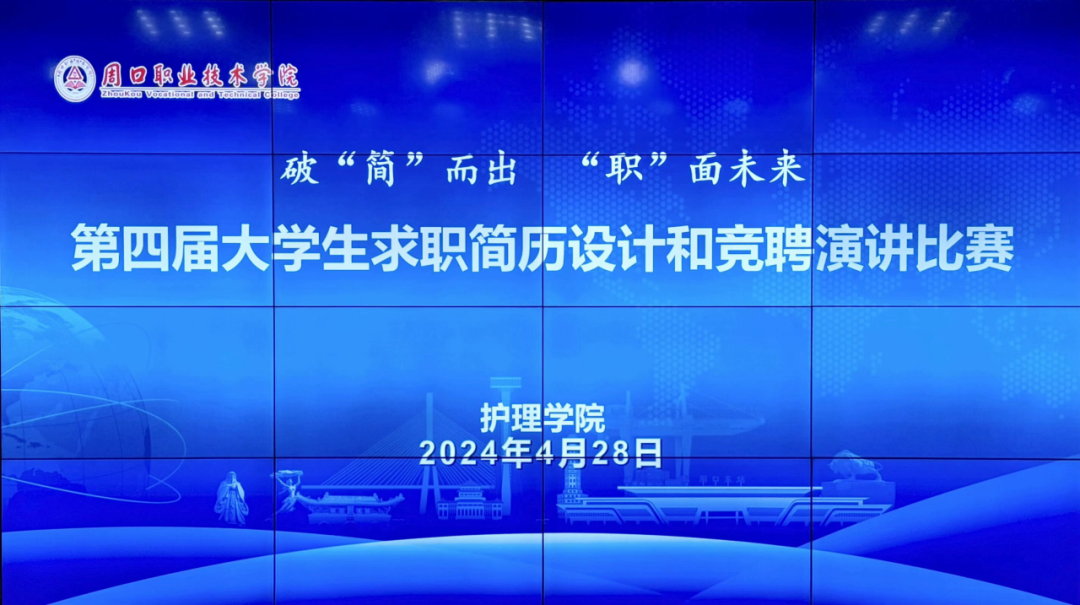 4月28日,周口职业技术学院护理学院于文昌校区报告厅开展第四届大学生求职简历设计和竞聘演讲比赛,担任此次比赛的评委有副院长孙晓鹏、学管办主任孙慧悦、就业指导员李停停、王伟老师和王敏老师,各班学生代表参加此次活动。