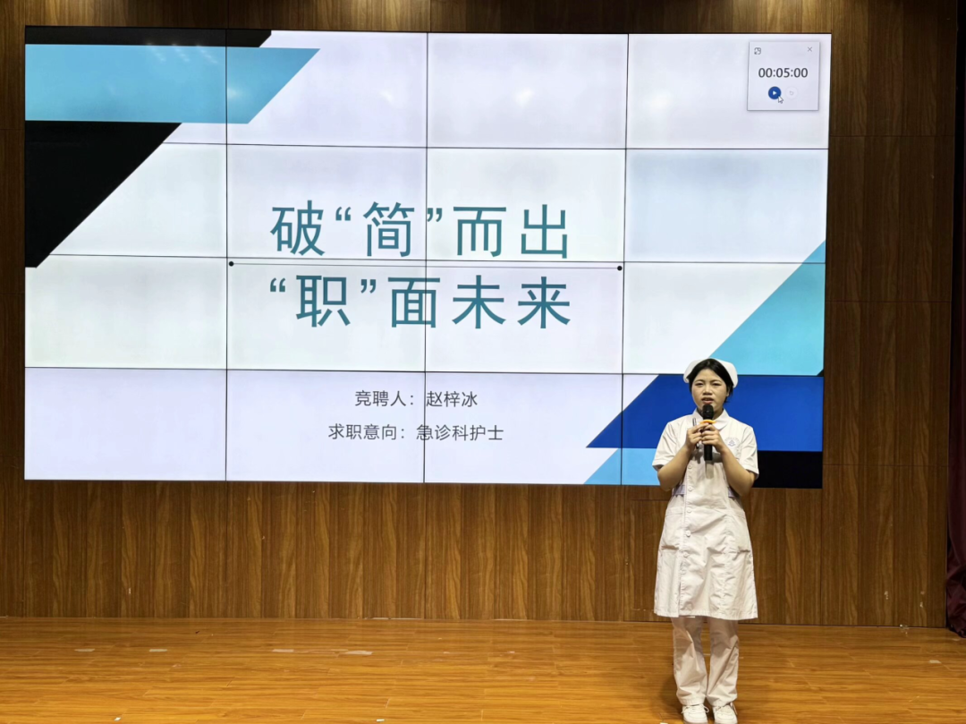 选手们都采用了PPT演讲的形式来展示简历,从自我介绍、求职意向、实践经历和自我评价等方面介绍自己的简历,在参赛选手介绍期间,评委根据简历内容、仪容仪表等对参赛选手进行打分。