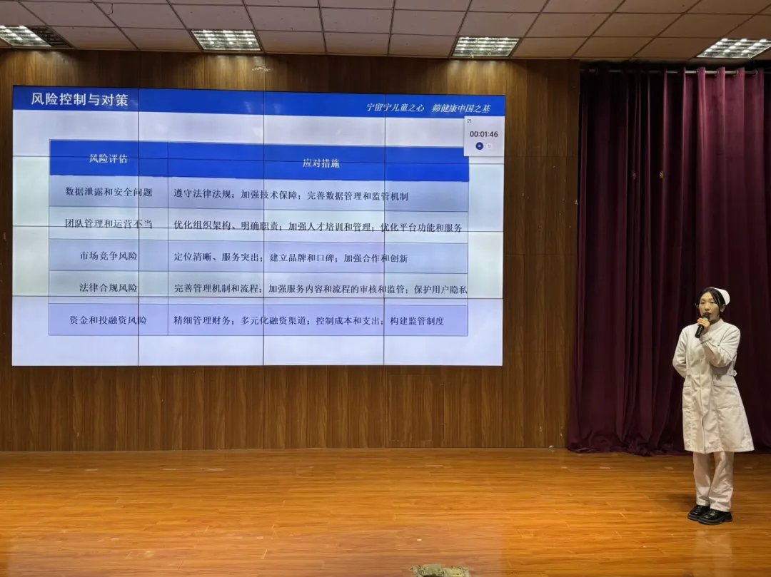 参赛选手们准备充分,语言表达准确生动,以精美的PPT、直观的数据分析、图片等展开激烈角逐。汇报项目主题丰富,包含养老护理、关爱留守儿童、婴幼儿零食、社区养老等话题。他们侃侃而谈、意气风发,用制作精良的ppt构建自己的项目王国,用生动形象的语言描绘自己的理想国度,眼里闪动的光是追梦路上引领他们不断进发的光芒。