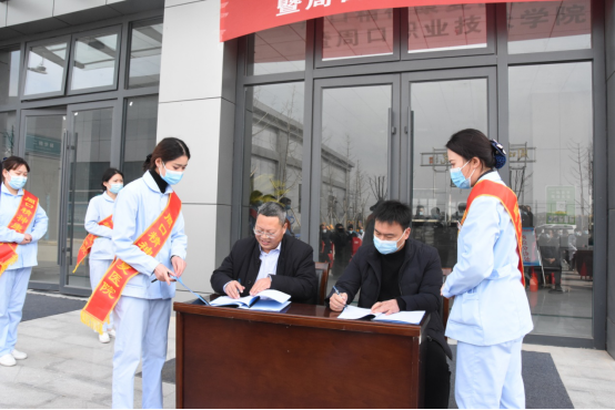 2月1日上午,我校与周口精神康复医院举行实习就业基地签约揭牌仪式,副校长李明臣、市卫健委副主任刘建峰、市残疾人联合会副理事长张会彦、市城乡一体化示范区管委会副主任丁有亮、教务处处长付晓东、护理学院院长于爱霞、医学院院长王金玲等参加签约揭牌仪式并出席周口精神康复医院三周年院庆活动。仪式由市城乡一体化示范区卫健委主任韩宝珠主持。