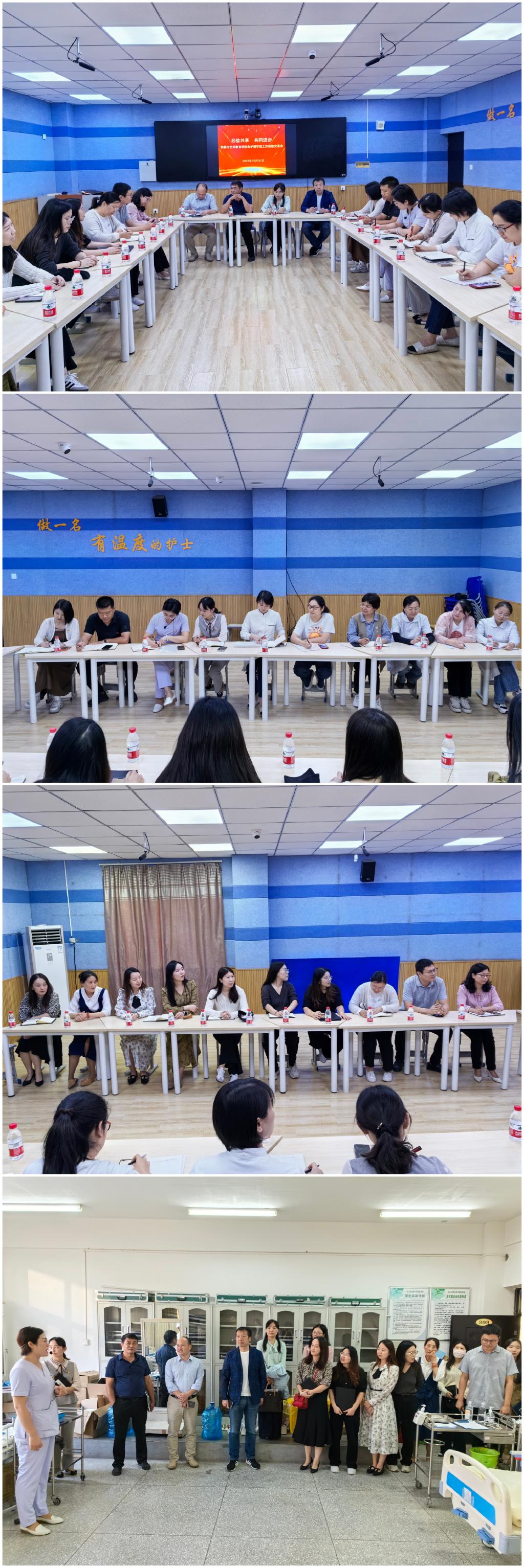 为扎实推动主题教育走深走实,2023年10月31日,学前与艺术教育学院领导班子成员、教研室主任、教师代表一行前往护理学院参观学习。护理学院党总支书记张华珍、院长付晓东带领学院领导班子成员热情接待并陪同参观。