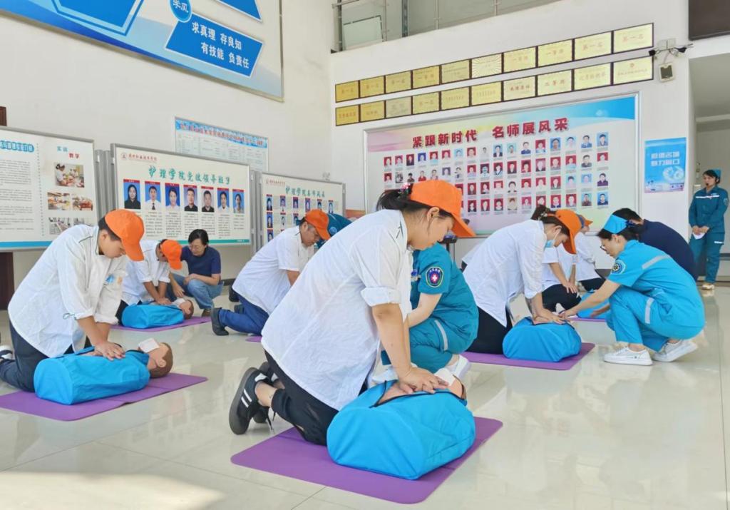 此次培训由护理学院李艳、任冬、魏娜、王萌、刘舒嘉老师进行授课,通俗易懂的讲解使后勤工作人员全面了解了心理危机的识别方法和干预措施。培训过程中,老师们还为后勤工作人员代表进行了心肺复苏培训。