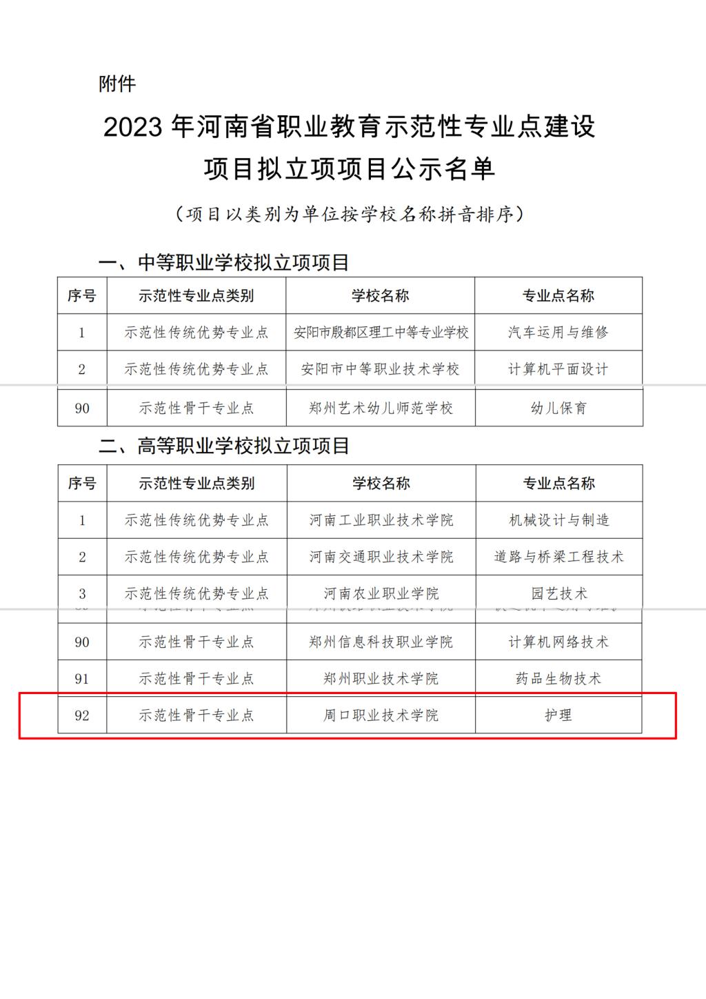 近日,河南省教育厅关于2023年河南省职业教育示范性专业点建设项目拟立项项目名单的公示。我校护理学院的护理专业成功入选,拟立项为“示范性骨干专业点”。