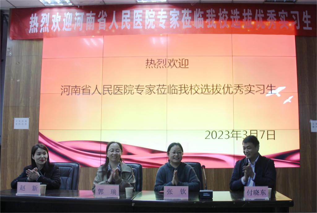 河南省人民医院有着百年的历史传承,是我省学科实力突出、业务技术领先的的省直综合性三级甲等医院,与我校有着良好的教学合作关系。今年是我院第三年向河南省人民医院医院实习生,经过之前两年的实习,河南省人民医院对我院的学生在实习期间的表现非常满意,因此今年又给我院增加了实习名额,这也充分说明了省内一流、具有国内先进水平的河南省人民医院对我院教育教学质量及学生素质的认可。今年报名河南省医实习生选拔的共有100余人,经过学院初试和医院面试两个环节,不仅给实习护生一个锻炼自我、展示自我的机会,也提醒我们全体同学,在校期间应努力学好专业知识,并积极参加各类有益身心的课外活动,从而提高自身的综合素质,使自己成为一个国家和社会都需要的高素质实用型人才。
